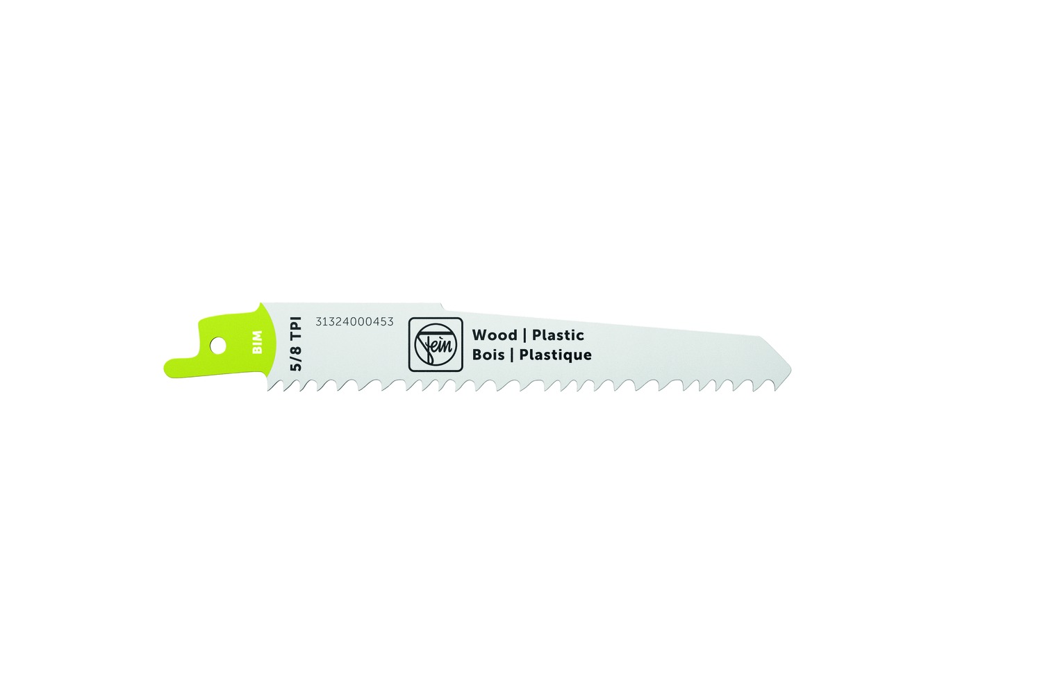 This is 5/8 Teeth Per Inch Plastic 150mm Cutting Length Reciprocating Saw Blade Pack of 3 manufactured by FEIN. The manufacturer part number is 31324000453. It has 5/8 number of teeth per inch . It has 3 items per pack . It has about 150mm cutting length . Applications Information involves plastic, timber. It is offered to cut plastic materials . It is designed with a reciprocating saw blade type saw blade .
