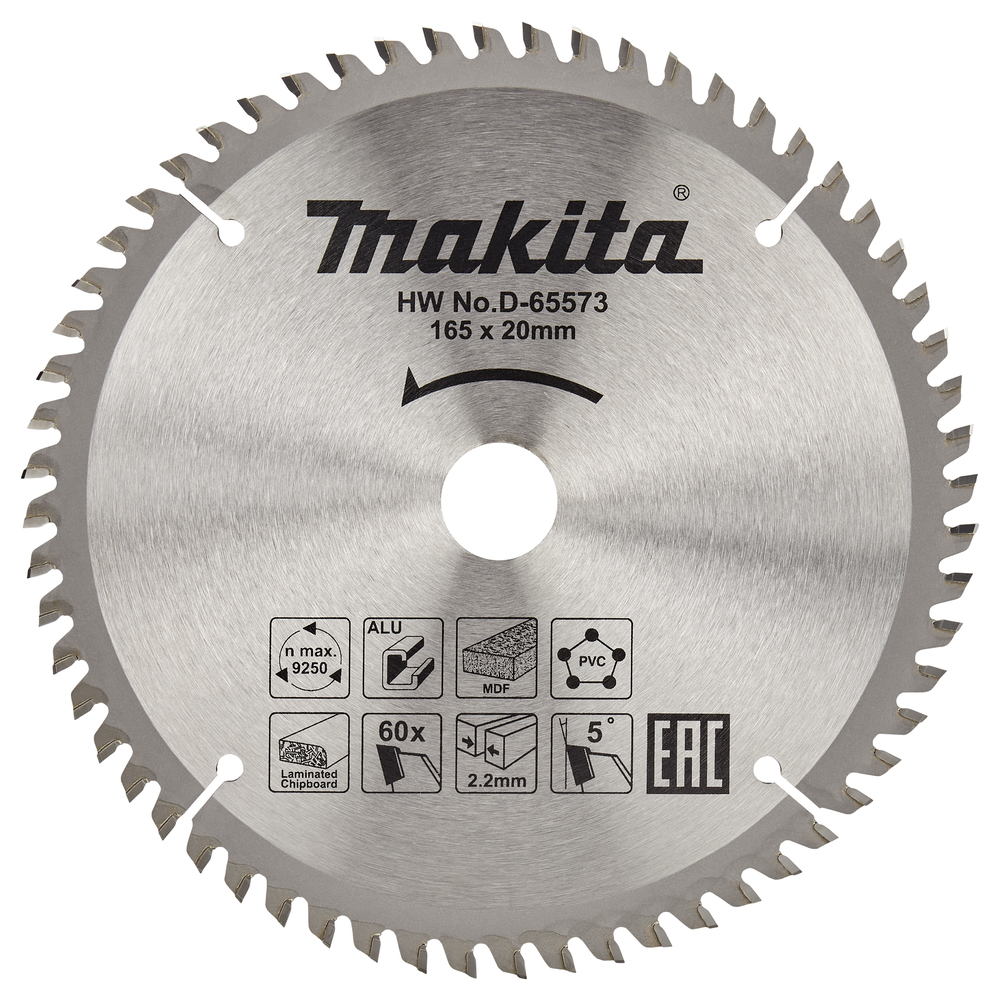 This is Circular Saw Blade Pack of 1 manufactured by Makita. The manufacturer part number is D-81206. It has a 5° rake angle . It contains 60 teeth. Its arbor diameter is about 20mm . The blade diameter of the product is 165mm . In addition, it has aluminium, wood, copper, polyvinyl chloride, brass cut material . It has a/an straight type cut . circular saw blade is a versatile product designed to provide user-defined applications. The product consists of 1 pieces. In addition, its blade is made up of tungsten carbide material .