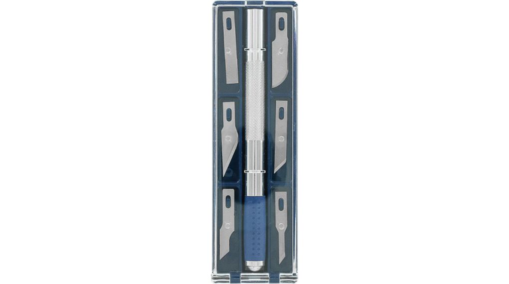 This is 153 mm Plastic Modelling Cutter Craft Knife Set manufactured by RND. The manufacturer part number is RND 550-00216. Its comfortable handle is manufactured from durable rubberised soft grip material. Moreover, its blade is of flat shape . It includes a/an craft knife type knife . It has an overall length of 153 mm. The product consists of 7 pieces. It comes in plastic modelling cutter configuration. The included number of blades is/are 6 .