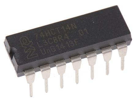 This is Hex Schmitt Trigger Inverter 4.5 → 5.5 V 14-Pin PDIP manufactured by NXP. The manufacturer part number is 74HCT14N. The given dimensions of the product include 19.5 x 6.48 x 3.2mm. The logic family is hct. Furthermore, the product is 6.48mm wide. It carries schmitt trigger input type. On the other hand, it is featured with 4ma of max. low level output current. While a -4ma of maximum high level output current. It provides up to 34 ns @ 4.5 v maximum propagation delay time. While its minimum operating supply voltage is 4.5 v. The package is a sort of pdip. It consists of 6 elements per chip. It has a maximum operating temperature of +125 °c. Its accurate length is 19.5mm. It contains 14 pins. It has 5.5 v maximum operating supply voltage. The product is available in through hole configuration. The primary function of logic includes inverter. In addition, the height is 3.2mm. Whereas, the minimum operating temperature of the product is -40 °c. Schmitt Trigger Input - yes. Features 50pf of propagation delay test condition.