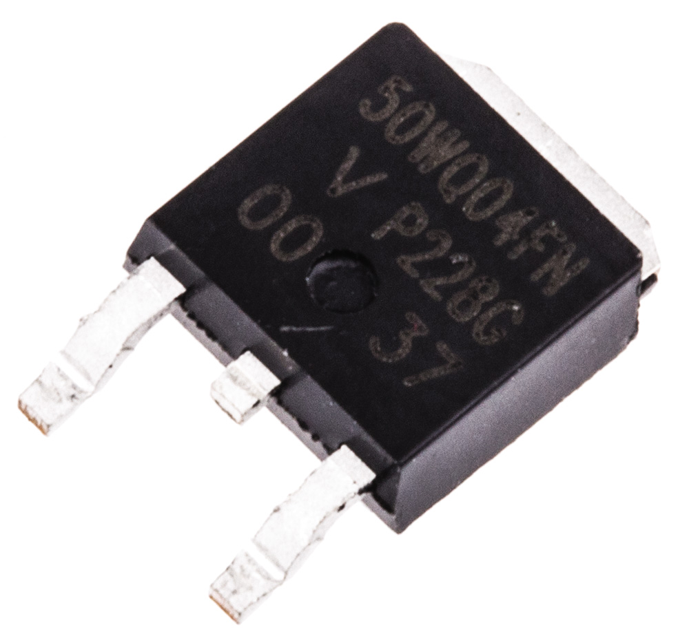 This is SMT Schottky Diode 40V 5.5A 3-Pin DPAK manufactured by Vishay. The manufacturer part number is VS-50WQ04FN-M3. The product is available in surface mount configuration. The product utilizes schottky diode technology. Moreover, a bespoke product has 550a peak non-repetitive forward surge current. It features 440mv of maximum forward voltage drop. Furthermore, its maximum continuous forward current constitutes 5.5a. This schottky rectifier product is highly suited for various professionals in various settings. The package is a sort of dpak (to-252). It consists of 1 elements per chip. It is designed with a schottky diode. The diode features a single configuration. It contains 3 pins. While having the peak reverse repetitive 40v.