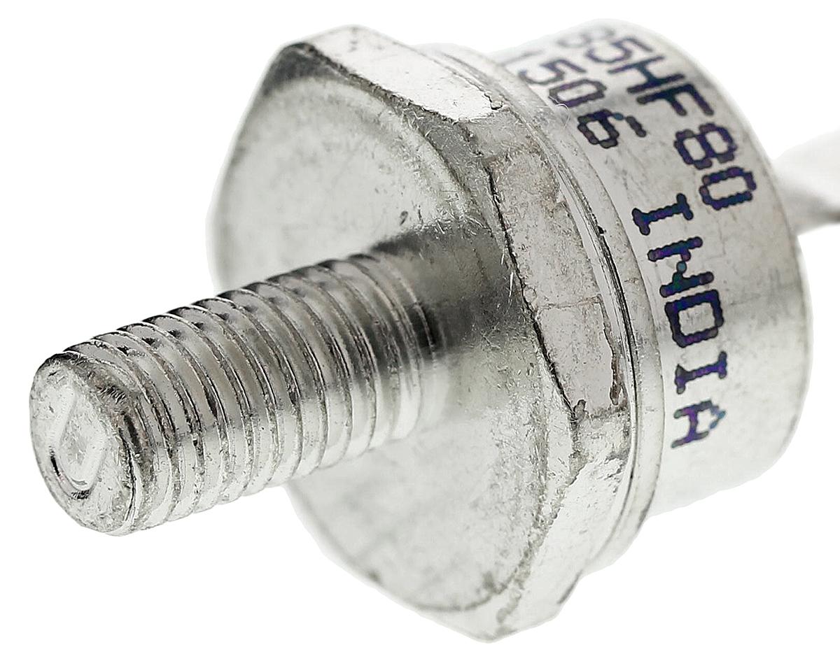This is Thread Mount Fast Recovery Diode Stud Cathode 800V 85A 2-Pin DO-203AB manufactured by Vishay. The manufacturer part number is VS-85HF80. The product is available in thread mount configuration. The product utilizes silicon junction diode technology. Moreover, a bespoke product has 1.8ka peak non-repetitive forward surge current. It features 1.2v of maximum forward voltage drop. Furthermore, its maximum continuous forward current constitutes 85a. This switching product is highly suited for various professionals in various settings. The package is a sort of do-5. It consists of 1 elements per chip. It is designed with a silicon junction diode. The diode features a stud cathode configuration. It contains 2 pins. While having the peak reverse repetitive 800v.