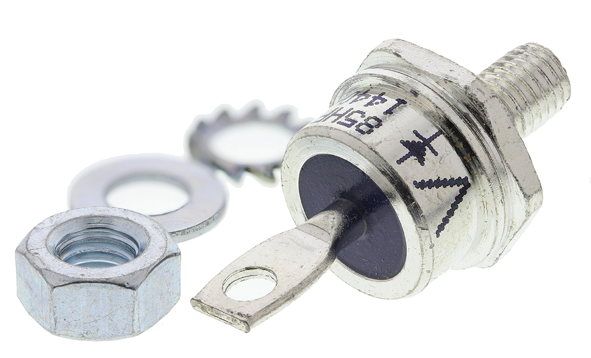 This is Thread Mount Switching Diode Stud Cathode 1600V 85A 2-Pin DO-5 manufactured by Vishay. The manufacturer part number is VS-85HF160. The given dimensions of the product include 22.9 x 20.02 x 17.35mm. The product is available in thread mount configuration. The product utilizes silicon junction diode technology. It has a maximum operating temperature of +150 °c. It features 1.4v of maximum forward voltage drop. In addition, the height is 22.9mm. Furthermore, the product is 17.35mm wide. Its accurate length is 20.02mm. The package is a sort of do-5. It consists of 1 elements per chip. Whereas, the minimum operating temperature of the product is -65 °c. The diode features a stud cathode configuration. It contains 2 pins.