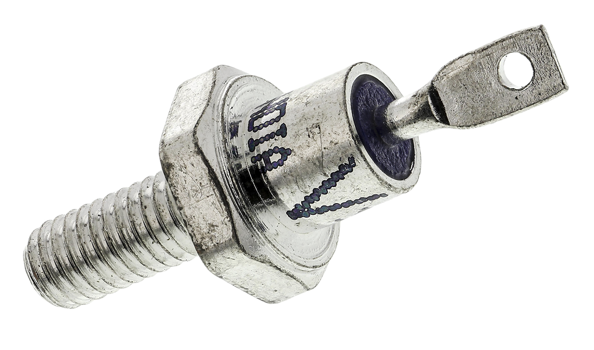 This is Thread Mount Switching Diode Stud Cathode 1200V 25A 2-Pin DO-4 manufactured by Vishay. The manufacturer part number is VS-25F120. The given dimensions of the product include 31.8 x 12.69 x 11mm. The product is available in thread mount configuration. The product utilizes silicon junction diode technology. It has a maximum operating temperature of +175 °c. It features 1.3v of maximum forward voltage drop. In addition, the height is 31.8mm. Furthermore, the product is 11mm wide. Its accurate length is 12.69mm. The package is a sort of do-4. It consists of 1 elements per chip. Whereas, the minimum operating temperature of the product is -65 °c. The diode features a stud cathode configuration. It contains 2 pins.