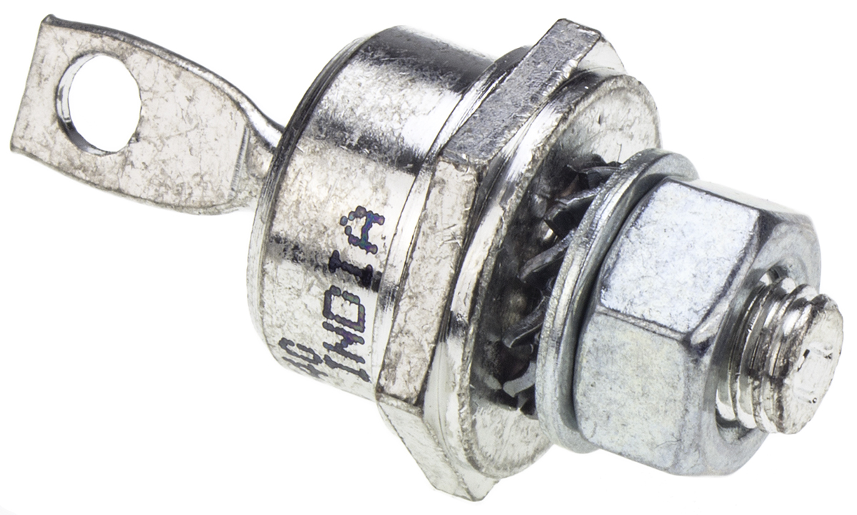 This is Thread Mount Switching Diode Stud Cathode 400V 40A 2-Pin DO-5 manufactured by Vishay. The manufacturer part number is VS-40HF40. The given dimensions of the product include 22.9 x 20.08 x 17.4mm. The product is available in thread mount configuration. The product utilizes silicon junction diode technology. It has a maximum operating temperature of +190 °c. It features 1.3v of maximum forward voltage drop. In addition, the height is 22.9mm. Furthermore, the product is 17.4mm wide. Its accurate length is 20.08mm. The package is a sort of do-5. It consists of 1 elements per chip. Whereas, the minimum operating temperature of the product is -65 °c. The diode features a stud cathode configuration. It contains 2 pins.