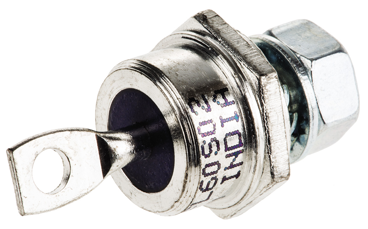 This is Thread Mount Switching Diode Stud Cathode 600V 70A 2-Pin DO-5 manufactured by Vishay. The manufacturer part number is VS-70HFL60S02. The given dimensions of the product include 22.9 x 20.02 x 17.35mm. The product is available in thread mount configuration. The product utilizes silicon junction diode technology. It has a maximum operating temperature of +125 °c. It features 1.85v of maximum forward voltage drop. In addition, the height is 22.9mm. Furthermore, the product is 17.35mm wide. Its accurate length is 20.02mm. The package is a sort of do-5. It consists of 1 elements per chip. Whereas, the minimum operating temperature of the product is -40 °c. The diode features a stud cathode configuration. It contains 2 pins.