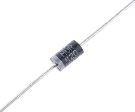 This is ON Semi Diode 200V 4A 2-Pin DO-201AD manufactured by ON Semiconductor. The manufacturer part number is MUR420G. Its diameter is 5.3mm. The product is available in through hole configuration. Moreover, it has a peak reverse recovery time about 75ns . Moreover, a bespoke product has 125a peak non-repetitive forward surge current. It features 890mv of maximum forward voltage drop. Furthermore, its maximum continuous forward current constitutes 4a. The product utilizes silicon junction diode technology. The package is a sort of do-201ad. It consists of 1 elements per chip. It is designed with a silicon junction diode. The diode features a single configuration. It contains 2 pins. While having the peak reverse repetitive 200v.