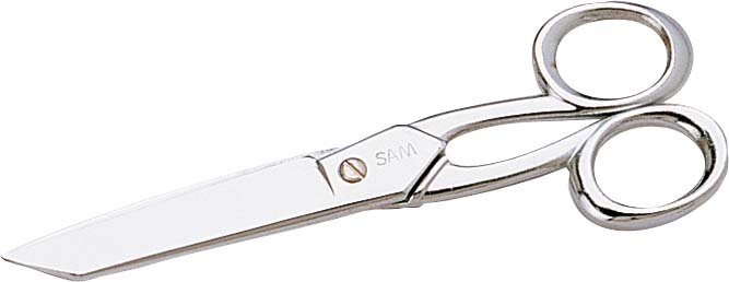 This is 170 mm Chrome Steel Sewing Scissors manufactured by SAM. The manufacturer part number is 375-C1. The blade has a length of 75 mm. It has an overall length of 170 mm. It has a scissor of sewing type . In addition, its blade is made up of chrome steel material .