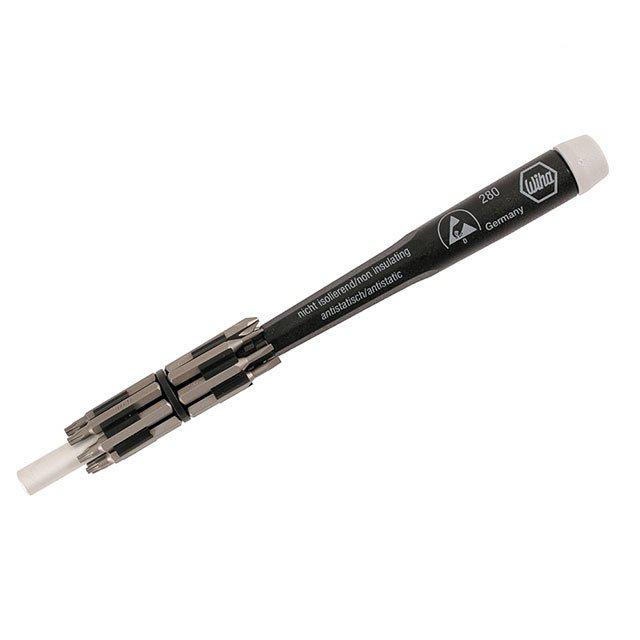 This is manufactured by Wiha. The manufacturer part number is 75097. It has typical 2 weeks of manufacturer standard lead time. The splendid features of the product include bit storage, esd safe, free turning cap. The typical product's weight is 0.17 lb (77.11g). The product microbit, is a highly preferred choice for users. The product is also supplied with bit holder, handle. The tip provides pentalobe, phillips, slotted configuration. It is available in the standard package of 1. The wiha's product offers user-desired applications. It comes in bit set configuration. Available in 16 pieces quantity.