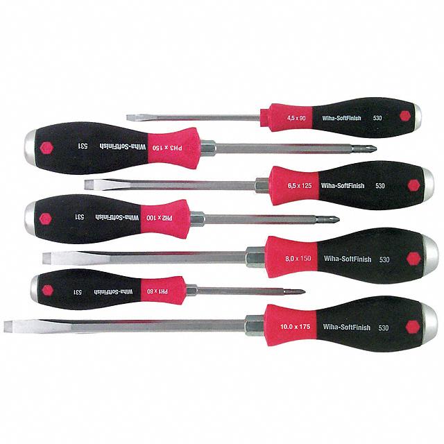 This is manufactured by Wiha. The manufacturer part number is 53097. The typical product's weight is 3.2 lbs (1.5 kg). It is assigned with possible HTSUS value of 8205.40.0000. It is shipped in bulk package . The product softfinish®, is a highly preferred choice for users. The product is not applicable. In addition, it is reach unaffected. Its typical moisture sensitivity level is not applicable. The splendid features of the product include chrome finish, ergonomic, soft grip. It has a long 2 weeks standard lead time. It comes in screwdriver set configuration. The built-in exquisite tip is a phillips, slotted tip. The product is designated with the ear99 code number.