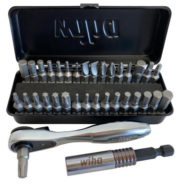 This is manufactured by Wiha. The manufacturer part number is 74996. The typical product's weight is 0.8 lb (362.87 g). It is assigned with possible HTSUS value of 8205.40.0000. It is shipped in bulk package . The product clicfix, is a highly preferred choice for users. The product is not applicable. In addition, it is reach unaffected. Its typical moisture sensitivity level is not applicable. The product is also supplied with bit holder, handle, metal case. The splendid features of the product include ergonomic, magnetic, ratcheting, quick release, soft grip. It has a long 2 weeks standard lead time. It comes in bit set configuration. The built-in exquisite tip is a hex, phillips, slotted, square, torx® tip. The product is designated with the ear99 code number.