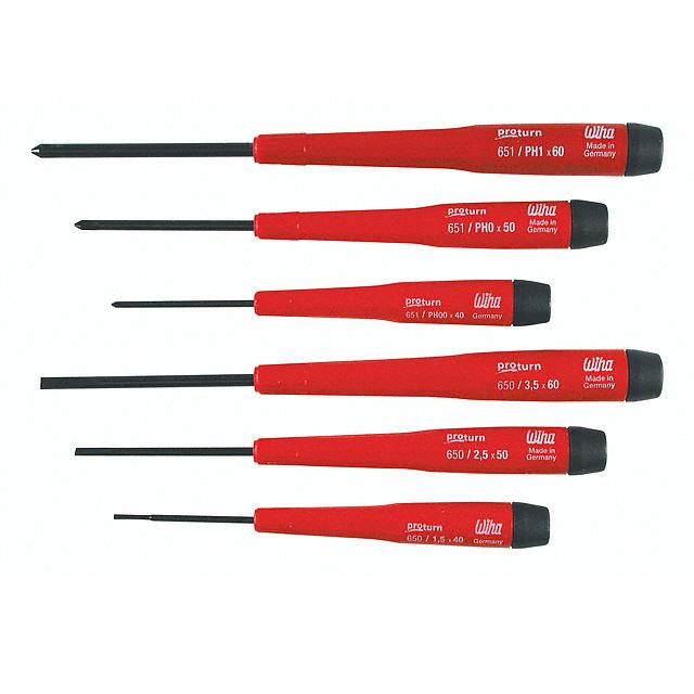 This is manufactured by Wiha. The manufacturer part number is 95190. The splendid features of the product include black finish, ergonomic, free turning cap. It is assigned with possible HTSUS value of 8205.40.0000. The product is not applicable. The product proturn, is a highly preferred choice for users. In addition, it is reach unaffected. Its typical moisture sensitivity level is not applicable. In addition, bulk is the available packaging type of the product. The wiha's product offers user-desired applications. It comes in screwdriver set configuration. The built-in exquisite tip is a phillips, slotted tip. The product is designated with the ear99 code number.