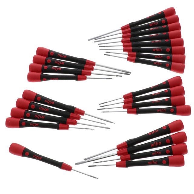This is manufactured by Wiha. The manufacturer part number is 26091. The product is rohs3 compliant. The product picofinish®, is a highly preferred choice for users. In addition, it is reach unaffected. It is assigned with possible HTSUS value of 8205.40.0000. In addition, box is the available packaging type of the product. Its typical moisture sensitivity level is 1 (unlimited). It has a long 2 weeks standard lead time. The wiha's product offers user-desired applications. It comes in screwdriver set configuration. The built-in exquisite tip is a hex, pentalobe, phillips, slotted, torx®, tri-wing® tip. The product is designated with the ear99 code number.