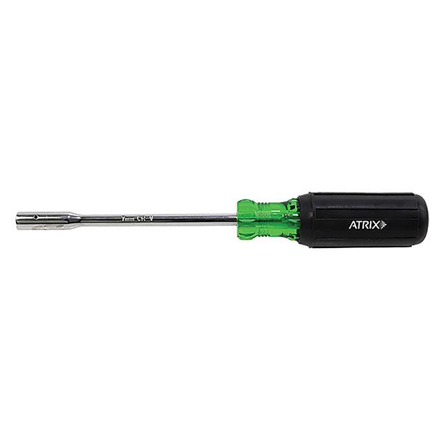 This is manufactured by Atrix International. The manufacturer part number is ATI7M. The blade is 5.00" (127.0mm) long. The product has an integral 9.45" (240.0mm) overall length. This is basically a useful and handy nut driver. It is assigned with possible HTSUS value of 8204.20.0000. It is shipped in box package . The product tool, is a highly preferred choice for users. The product is rohs3 compliant. The splendid features of the product include chrome finish, magnetic, non-slip. Its typical moisture sensitivity level is not applicable. The product is designated with the ear99 code number. The built-in exquisite tip is a hex socket tip. The product is available in 7mm size.
