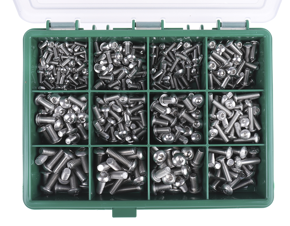 This is 490 piece Stainless Steel Screw/Bolt Kit M3 M4 M5 M6 manufactured by RS Pro. The manufacturer part number is 393-169. A quality product with a nice plain finish. The head has a button shape. It has a standard 20mm screw/bolt longest length . The product features a hex socket drive. The product is made from highly stable and reliable stainless steel. It has a socket screw type bolt/screw . It has a typical thread size of m3, m4, m5, m6. It has about 8 → 20mm screw/bolts lengths . The stainless steel is a a2 304. With a 8mm screw/bolt shortest length . The product consists of 490 pieces.