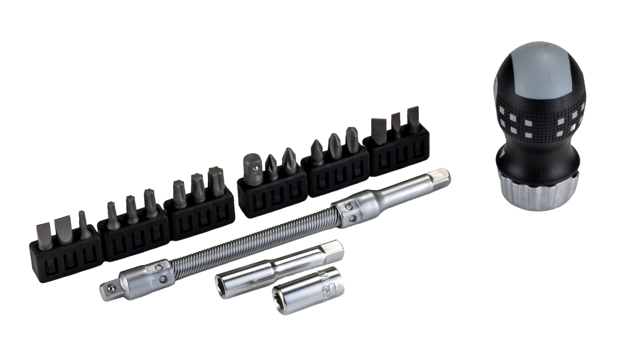 This is 22 pieces Bit Holder Socket Ratchet Bit Set manufactured by Bahco. The manufacturer part number is 808050S-22. It has a hexagon head and is ideal choice for a variety of demanding applications. The product is made from highly stable and reliable stainless steel. It has a model 808050s. The product is available in ph1, ph2, ph3, pz1, pz2, sl4, sl5, sl5.5, sl6.5, t10, t15, t20, t25, t27, t30 size. It comes in driver bit set configuration. The product consists of 22 pieces.
