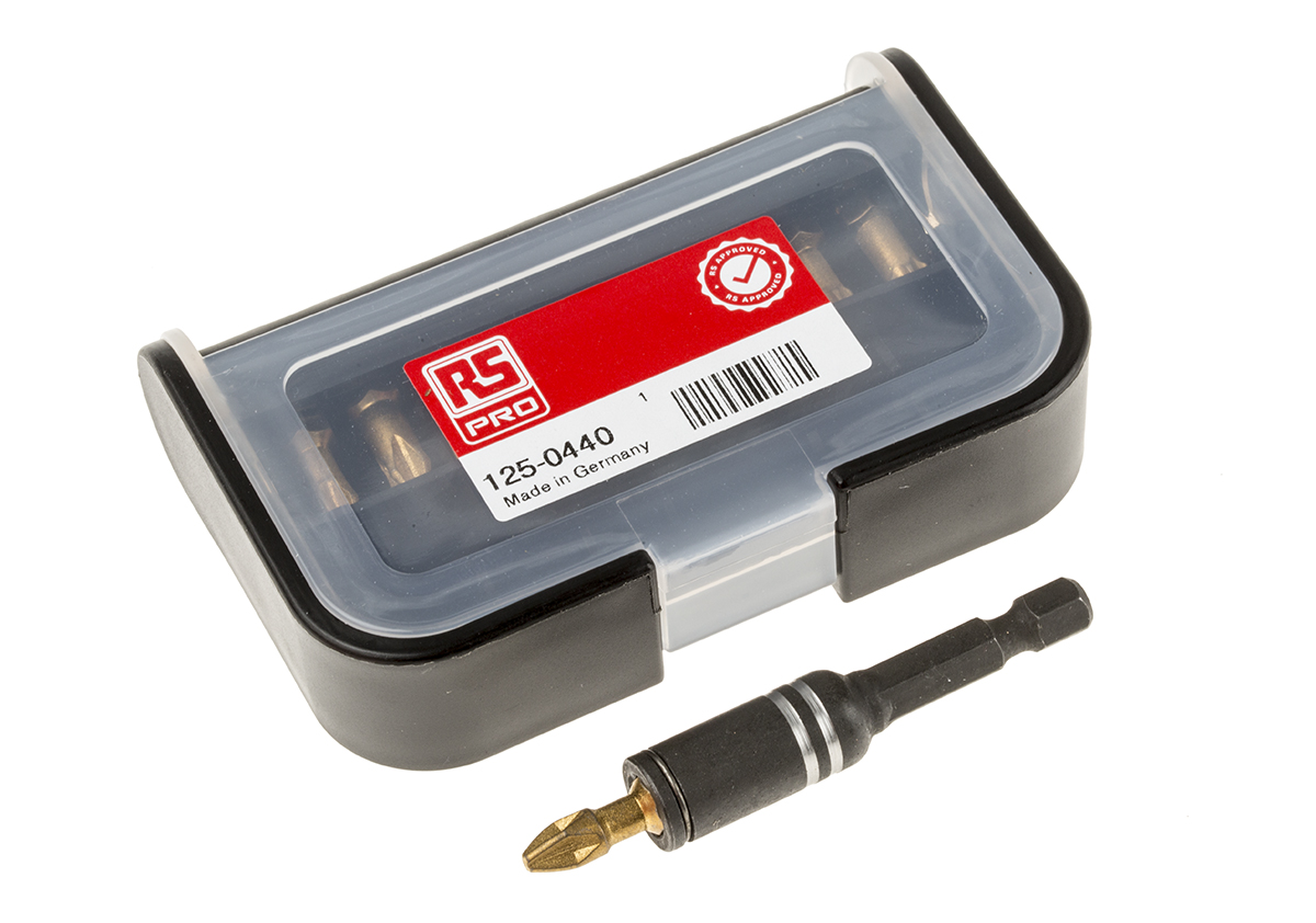 This is 10 pieces Diamond Driver Bit Set manufactured by RS Pro. The manufacturer part number is 125-0440. The product consists of 10 pieces. It has a phillips, pozidriv, star head and is ideal choice for a variety of demanding applications. It comes in impact driver bit configuration. The product is available in ph2, ph3, pz1, pz2, pz3, t20, t25, t30 size.