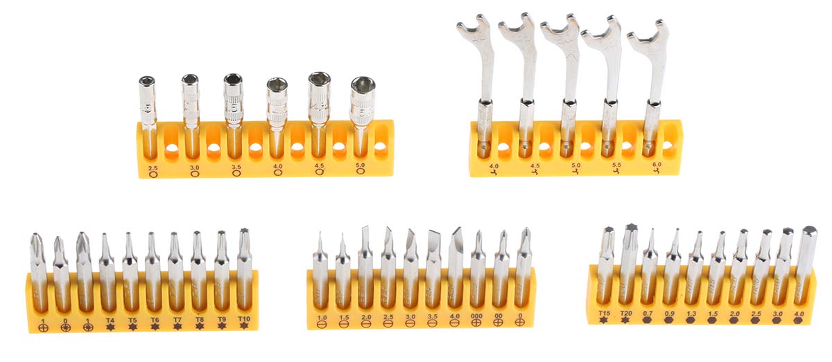 Hex 0.7, Hex 0.9, Hex 1.3, Hex 1.5, Hex 2, Hex 2.5, Hex 3, Hex 4, PH0, PH00, PH000, PH1, PZ0, PZ1, T4, T5, T6, T7, T8, T9, T10, T15, T20