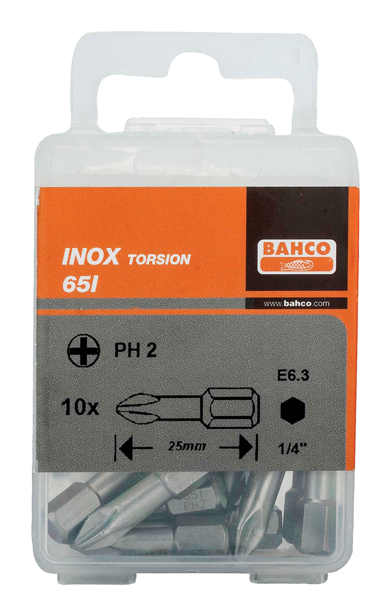 This is X2 BIT PH2 25MM 1/4¨STAINLESS manufactured by Bahco. The manufacturer part number is 65I/PH2-2P. The product is made from highly stable and reliable stainless steel. It has a phillips head and is ideal choice for a variety of demanding applications. The product is available in ph2 size. It comes in driver bit set configuration. The product consists of 2 pieces.