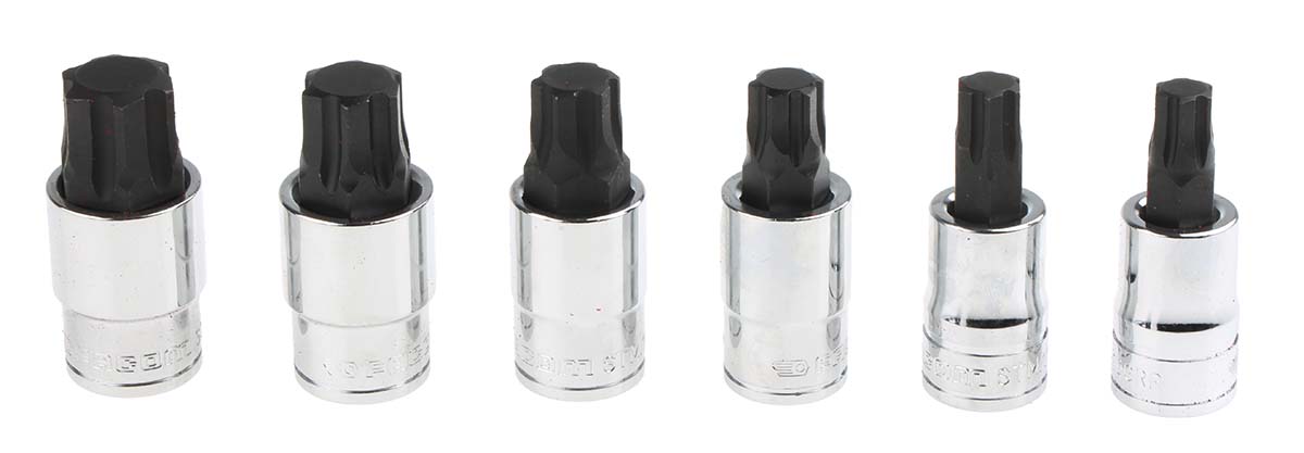 This is Driver Bit Set 6 pieces 10 mm 11 mm 12 mm 14 mm 17 mm 19 mm manufactured by Facom. The manufacturer part number is STM.J6MGRPPB. The product consists of 6 pieces. It has a square head and is ideal choice for a variety of demanding applications. It comes in bit sockets configuration. It has an overall length of 60 mm. The product is available in 10 mm, 11 mm, 12 mm, 14 mm, 17 mm, 19 mm size.