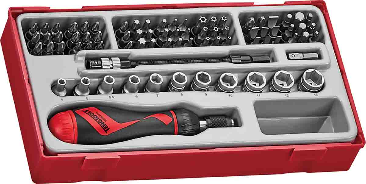 This is Driver Bit Set 84 pieces manufactured by Teng Tools. The manufacturer part number is TTMDR84. The product is made from highly stable and reliable alloy steel. It comes in bits driver set configuration. It has a hexagon, phillips, slotted, torx head and is ideal choice for a variety of demanding applications. The product consists of 84 pieces.