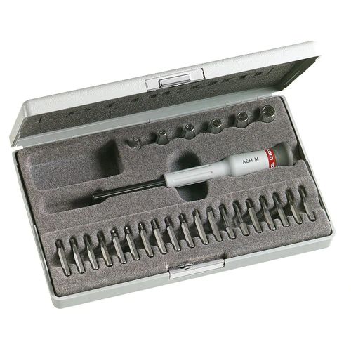 The Facom microtech tool set comprises of sockets, socket holder and bits. Socket size 1/4 inch