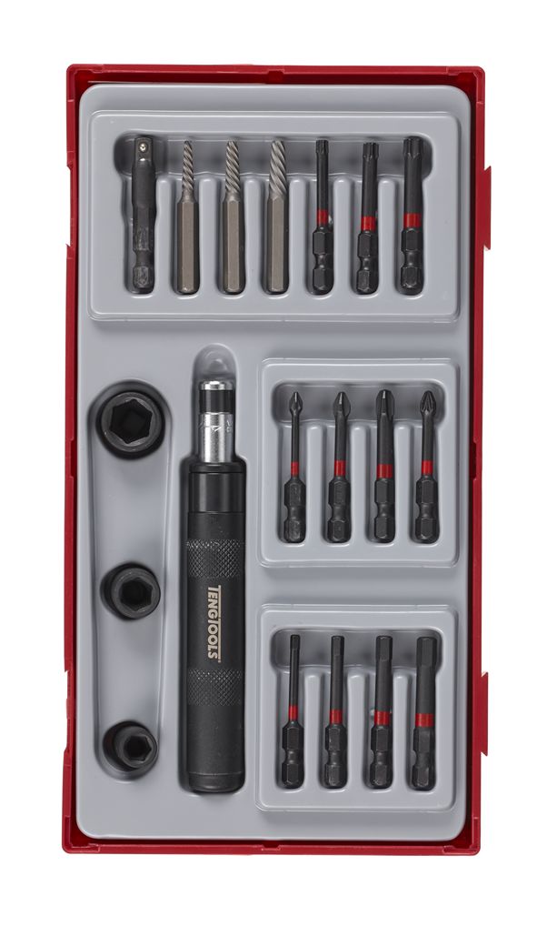 This is Impact Driver Set 19 Pieces Hexagon Phillips Pozidriv Torx manufactured by Teng Tools. The manufacturer part number is TTID19. It has a model ttid19. It has a hexagon, phillips, pozidriv, torx head and is ideal choice for a variety of demanding applications. It comes in impact driver set configuration. The product consists of 19 pieces.
