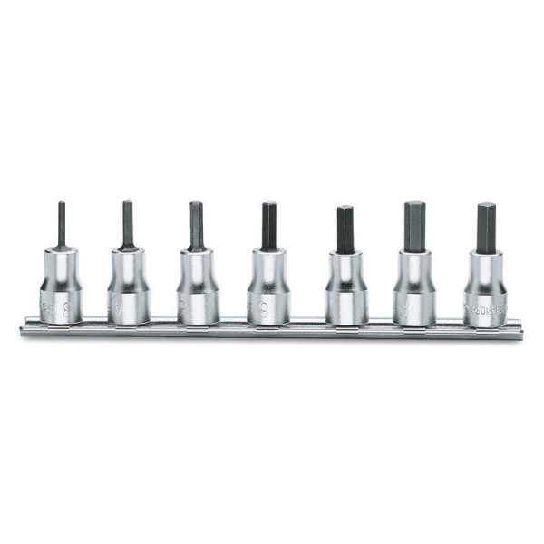This is Driver Bit Set 7 Pieces Hexagon manufactured by BETA. The manufacturer part number is 910PE/SB7. The product consists of 7 pieces. It has a hexagon head and is ideal choice for a variety of demanding applications. It comes in driver bit set configuration. The product is available in 3 mm, 4 mm, 5 mm, 6 mm, 7 mm, 8 mm, 10 mm size.