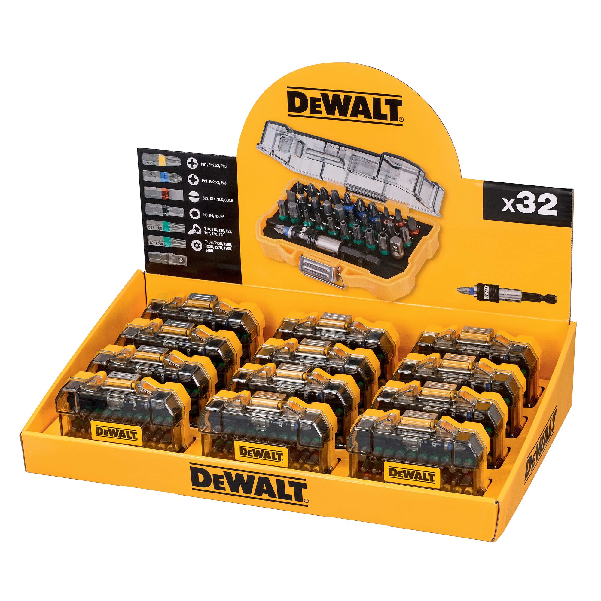 This is Screwdriver Bit Set 32 Pieces Hexagon Phillips Pozidriv Resistorx Slotted Torx manufactured by DeWALT. The manufacturer part number is DT7969M-QZ. It has a model dt7969m-qz. It has a hexagon, phillips, pozidriv, resistorx, slotted, torx head and is ideal choice for a variety of demanding applications. It comes in screwdriver bit set configuration. The product consists of 32 pieces.