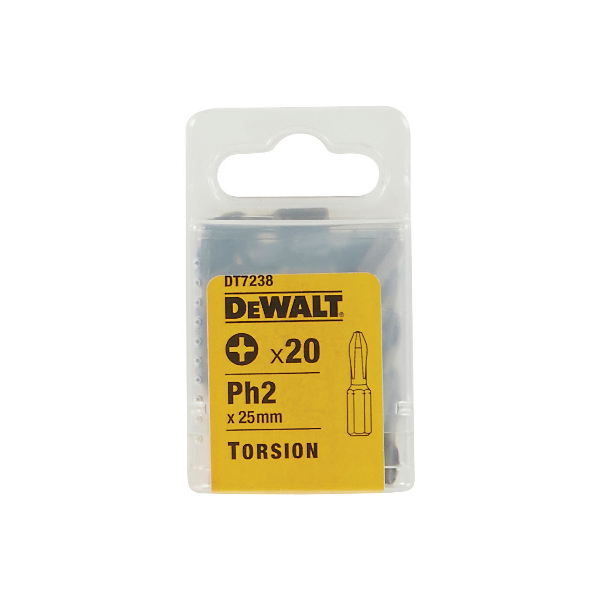 This is Screwdriver Bit 20 Pieces Phillips manufactured by DeWALT. The manufacturer part number is DT7238-QZ. It has a phillips head and is ideal choice for a variety of demanding applications. The product is made from highly stable and reliable steel. It has a model dt7238-qz. The product is available in ph2 size. It comes in screwdriver bit configuration. The product consists of 20 pieces.