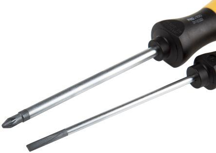 This is 5 pieces ESD Slotted; Phillips Screwdriver Set manufactured by Wiha Tools. The manufacturer part number is 27252. This esd screwdriver offers extreme comfort and a non-slip grip. The tip is slotted: 3; 4 mm (302esd); phillips: ph0; ph1; ph2 (311esd) in size. The product consists of 5 pieces. The built-in exquisite tip is a slotted; phillips tip. ESD Safety - yes.