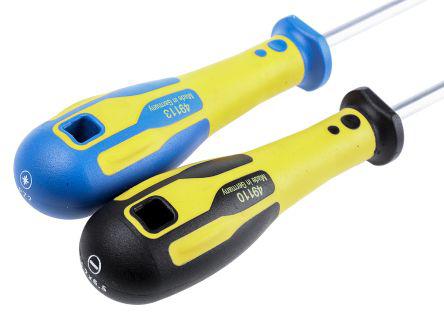 This is 7 pieces Engineers Slotted; Flared; Slotted Parallel; Pozidriv Screwdriver Set manufactured by CK. The manufacturer part number is T49163. This standard screwdriver offers extreme comfort and a non-slip grip. The tip is pozidriv 0, pozidrive 1, pozidrive 2, slotted 3, slotted 4, slotted 5.5, slotted 6.5 in size. The built-in exquisite tip is a pozidriv, slotted tip. The product consists of 7 pieces.