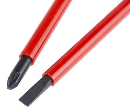 This is 6 pieces Electrical Pozidriv; Slotted Screwdriver Set manufactured by Facom. The manufacturer part number is ADVE.J6BP. This 1000v screwdriver offers extreme comfort and a non-slip grip. The tip is slotted: 2.5; 3.5; 4; 5.5 mm; pozidriv: pz1; pz2 in size. Its comfortable handle is manufactured from durable polyamide core material. The blade has a length of slotted: 75; 75; 100; 125; pozidriv: 100; 125 mm. In addition, its blade is made up of carbon steel, silicon carbon steel material . The built-in exquisite tip is a pozidriv; slotted tip. The product consists of 6 pieces.