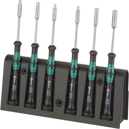 This is 6 pieces Precision Hexagon Screwdriver Set manufactured by Wera. The manufacturer part number is 05118158001 2069/6. The blade has a length of 60 mm. This precision screwdriver offers extreme comfort and a non-slip grip. The tip is 2; 2.5; 3; 3.5; 4; 5 mm in size. The built-in exquisite tip is a hexagon tip. The product consists of 6 pieces.