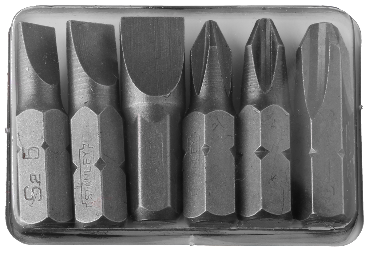This is 12 pieces Interchangeable Flat Screwdriver Set manufactured by Stanley. The manufacturer part number is FMHT0-62691. The tip is flat: 5 mm, flat: 6.5 mm, flat: 8 mm, phillips: ph1, phillips: ph2, phillips: ph3, pozidriv: pz1, pozidriv: pz2, pozidriv: pz3, torx: t10, torx: t15, torx: t20 in size. The built-in exquisite tip is a slotted tip. The product consists of 12 pieces.