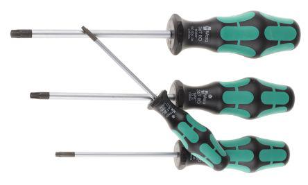 This is 6 pieces Torx Screwdriver Set manufactured by Wera. The manufacturer part number is 05138250001 367/6 TORX BO. The blade has a length of 80; 80; 100; 100; 115; 130 mm. This standard screwdriver offers extreme comfort and a non-slip grip. The tip is torx: t10; t15; t20; t25; t30; t40 in size. The built-in exquisite tip is a torx tip. The product consists of 6 pieces.