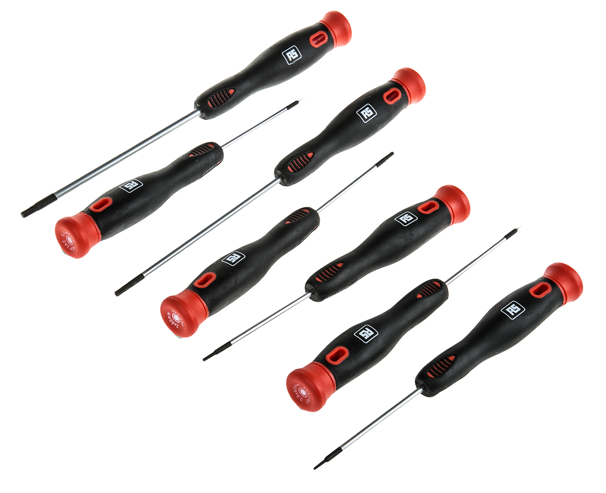 This is 7 pieces Precision Hexagon Screwdriver Set manufactured by RS Pro. The manufacturer part number is 243-686. This precision screwdriver set screwdriver offers extreme comfort and a non-slip grip. The tip is hexagon: 0.6; 0.7; 1.3; 1.5; 2; 2.5; 3 mm in size. The built-in exquisite tip is a hexagon tip. The product consists of 7 pieces.
