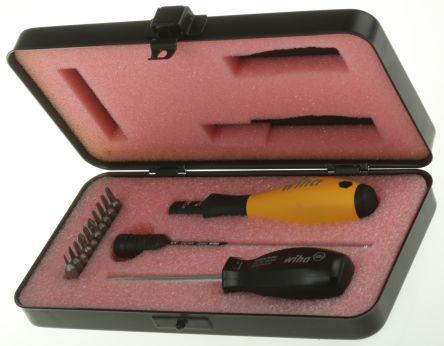 This is 13 pieces Electrical Slotted; Phillips; Pozidriv; Torx Screwdriver Set manufactured by Wiha Tools. The manufacturer part number is 27687. This esd screwdriver offers extreme comfort and a non-slip grip. The tip is slotted: 4' 5.5 mm' phillips: ph0' ph1' pozidriv: pz0' pz1' torx: t7' t8' t9' t10 in size. The product consists of 13 pieces. The built-in exquisite tip is a slotted' phillips' pozidriv' torx tip. ESD Safety - yes.