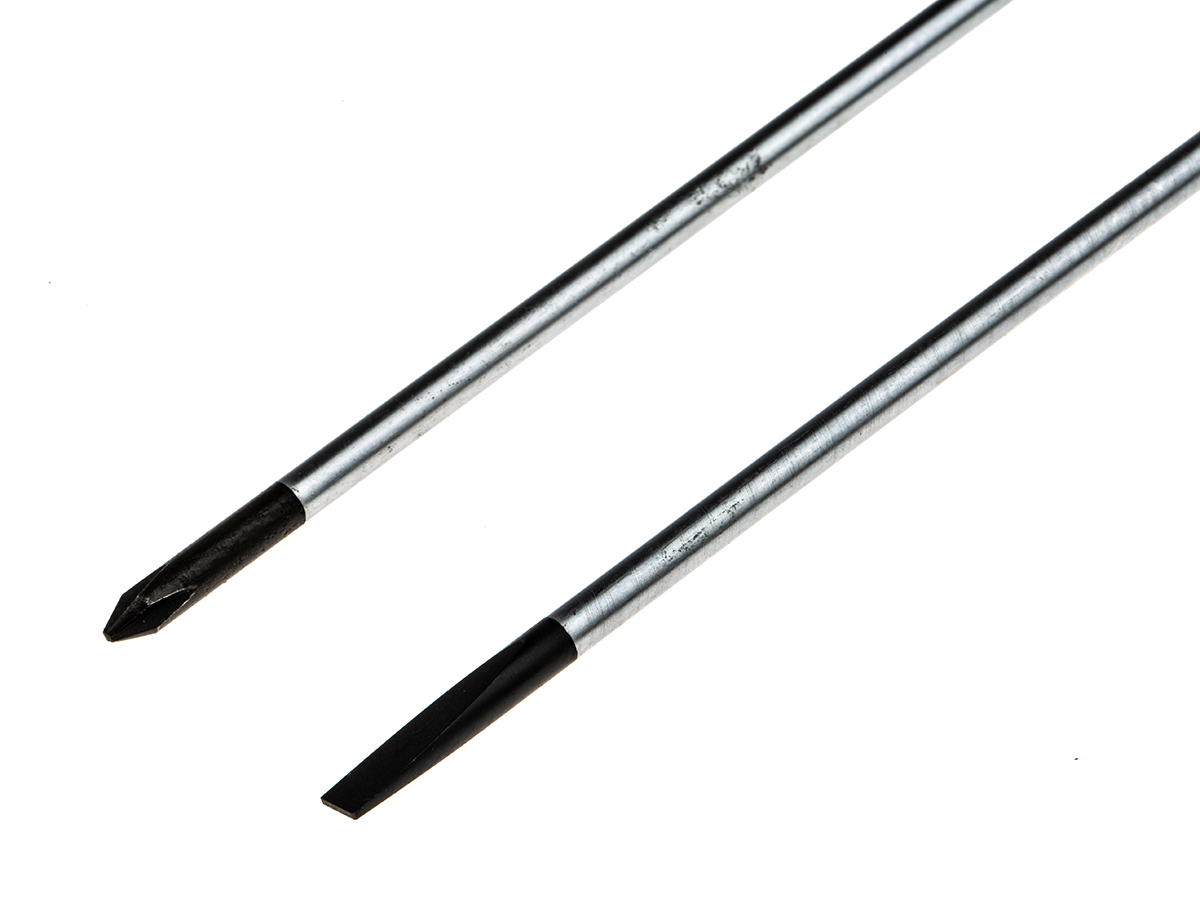 This is 6 pieces Long Reach Pozidriv Slotted Screwdriver Set manufactured by RS Pro. The manufacturer part number is 537-849. This precision screwdriver set screwdriver offers extreme comfort and a non-slip grip. The tip is philips: ph0; ph0; ph1; slotted: 2.4; 3; 4 mm in size. The built-in exquisite tip is a phillips: slotted tip. The product consists of 6 pieces.