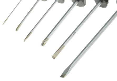 This is 6 pieces Slotted; Phillips Screwdriver Set manufactured by Wera. The manufacturer part number is 05105650001 334/6 Rack Lasertip. This standard screwdriver offers extreme comfort and a non-slip grip. The tip is slotted: 3; 4; 5.5; 6.5 mm; phillips: ph1; ph2 in size. Its comfortable handle is manufactured from durable bi-material material. In addition, it has a chrome blade finish . The blade has a length of slotted: 80; 100; 125; 150; phillips: 80; 100 mm. The built-in exquisite tip is a slotted; phillips tip. The product consists of 6 pieces.