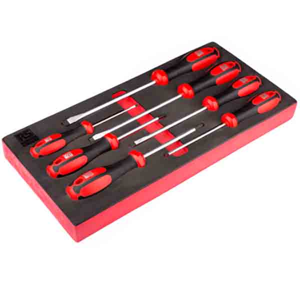 This is Screwdriver Set 7 Piece - Soft Feel Pozidriv Slotted manufactured by RS Pro. The manufacturer part number is 125-3058. This standard screwdriver set screwdriver offers extreme comfort and a non-slip grip. The built-in exquisite tip is a pozidriv; slotted tip. The product consists of 7 pieces.