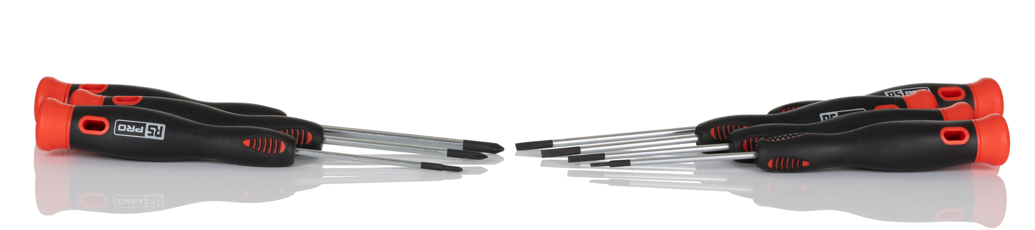 This is Screwdriver Set 7 Piece - Precision Slotted; Phillips manufactured by RS Pro. The manufacturer part number is 243-513. This precision screwdriver set screwdriver offers extreme comfort and a non-slip grip. The tip is slotted: 1.5; 2.5; 3; 3 mm; phillips: ph00; ph0; ph1 in size. The built-in exquisite tip is a phillips; slotted tip. The product consists of 7 pieces.