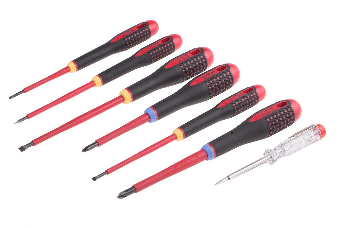 This is Screwdriver Set 6 Piece - Insulated Pozidriv Slotted manufactured by Bahco. The manufacturer part number is BE-9889S. VDE/1000V Approval Options - yes. This insulated screwdriver set screwdriver offers extreme comfort and a non-slip grip. The tip is 2.5 mm, 3 mm, 3.5 mm, 4 mm, 5.5 mm, pz1, pz2 in size. The built-in exquisite tip is a pozidriv; slotted tip. The product consists of 6 pieces.