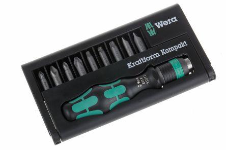 Case, Hand-Held Bit Holder, PH 1 x 25 mm (Phillips), PH 2 x 25 mm (Phillips), PZ 1 x 25 mm (Pozidrive), PZ 2 x 25 mm (Pozidrive), TX 10 x 25 mm (Torx), TX 15 x 25 mm (Torx), TX 20 x 25 mm (Torx), 0.5 x 25 mm (Slotted), 1.0 x 25 mm (Slotted), 1/4 in. x 90 mm (Hex)