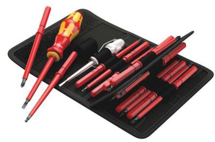 This is Screwdriver Set 16 Piece - Electricians Slotted; Phillips; Pozidriv; Pozidriv; Torx; Hexagon manufactured by Wera. The manufacturer part number is Kraftform Kompakt VDE 16 Universal 1. The blade has a length of slotted: 70 (voltage tester); 154; phillips: 154; pozidriv: 154; pozidriv/si: 154; torx: 154; hexagon: 102 mm. This vde screwdriver offers extreme comfort and a non-slip grip. The tip is slotted (voltage tester): 0.5 x 3 mm; 0.4 x 2.5 mm; 0.6 x 3.5 mm;0.8 x 4 mm; 5.5 mm; phillips: ph1; ph2; pozidriv: pz1; pz2; pozidriv/si: pz1; pz2; torx: t25; t10;t15;t20; hexagon: 9 mm in size. The built-in exquisite tip is a slotted; phillips; pozidriv; pozidriv; torx; hexagon tip. The product consists of 16 pieces.