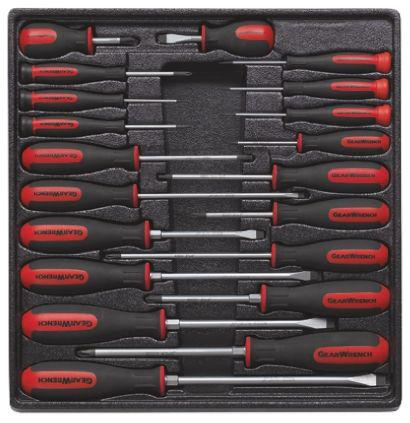 This is Screwdriver Set 20 Piece - Engineers Phillips; Slotted; Torx manufactured by Gear Wrench. The manufacturer part number is 80066. This engineers screwdriver offers extreme comfort and a non-slip grip. The tip is slotted: 1/4(x3)' 3/16' 5/16' 3/8 in' phillips: ph0' ph1(x2)' ph2(x)' ph3' mini slotted: 1.5' 2' 2.5 mm' mini phillips: ph00' ph0' ph1' torx: t15' t20 in size. The built-in exquisite tip is a phillips' slotted' torx tip. The product consists of 20 pieces.