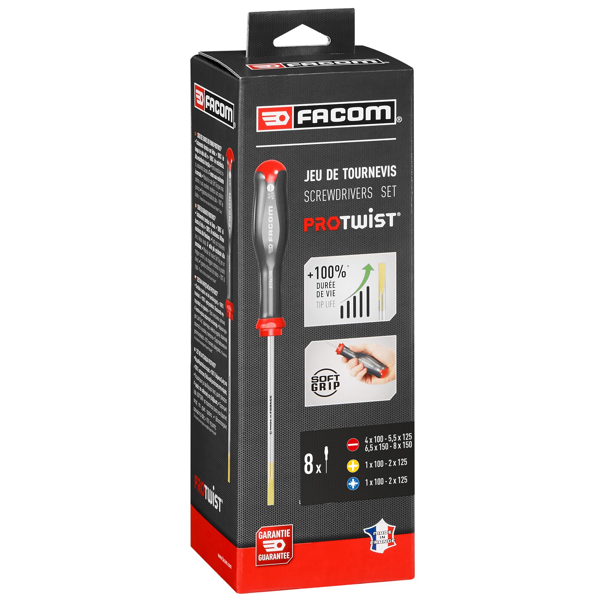 The Facom AT.J8PB is an essential toolkit for engineers and technicians, offering an 8-piece collection of high-quality screwdrivers designed for precision and durability. This set includes Phillips, Pozidriv, and Slotted screwdrivers, each crafted with ergonomic handles for comfort and maximum torque. The chrome-plated, anti-corrosion blades ensure long-lasting performance, making these tools perfect for a wide range of applications. This comprehensive set is ideal for both professional and DIY use, making it a valuable addition to any toolkit.
