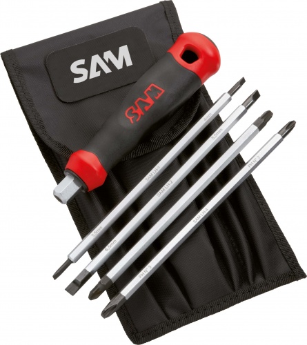 This is Screwdriver Set 5 Piece manufactured by SAM. The manufacturer part number is TR-7. This interchangeable standard screwdriver set screwdriver offers extreme comfort and a non-slip grip. The product consists of 5 pieces.