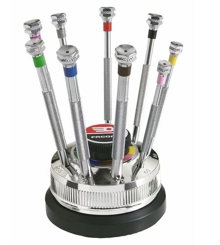 This is Watchmaker Slotted Screwdriver Set 9 Piece manufactured by Facom. The manufacturer part number is HB.4. This precision screwdriver set screwdriver offers extreme comfort and a non-slip grip. The built-in exquisite tip is a slotted tip. The product consists of 9 pieces.