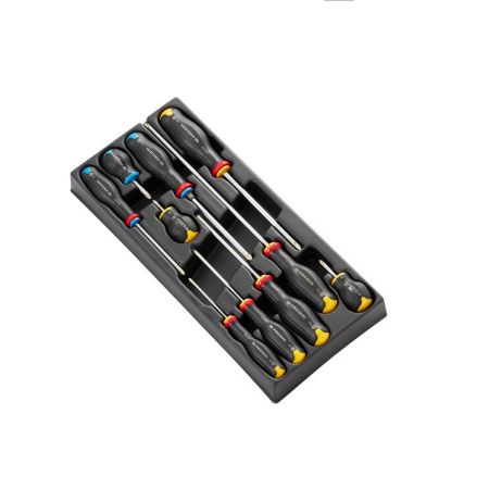 This is Protwist Phillips Pozidriv Screwdriver Set 10 Piece manufactured by Facom. The manufacturer part number is MOD.AT5. This standard screwdriver set screwdriver offers extreme comfort and a non-slip grip. The built-in exquisite tip is a phillips; pozidriv tip. The product consists of 10 pieces.